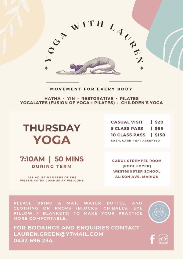 Yoga with Lauren is back at Westminster School for Term 1