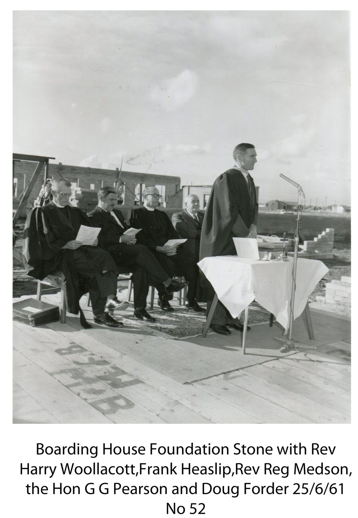 The School opened on 7 February 1961 with a student body of 143 boys: 86 in Years 1 through 7 and 57 in Year 8, under the leadership of Headmaster Douglas Forder. The 200 Block was used as the main bank of classrooms that could be opened up into a multi-purpose assembly hall. For the first year, the 28 boarders lived off-campus at Shaftesbury House in the City of Adelaide with priority given to building a boarding house in the School grounds, which opened in 1962. In the initial phase of construction, an oval was also prepared, the Headmaster’s residence and sports change rooms were built and many trees and shrubs were planted.Â